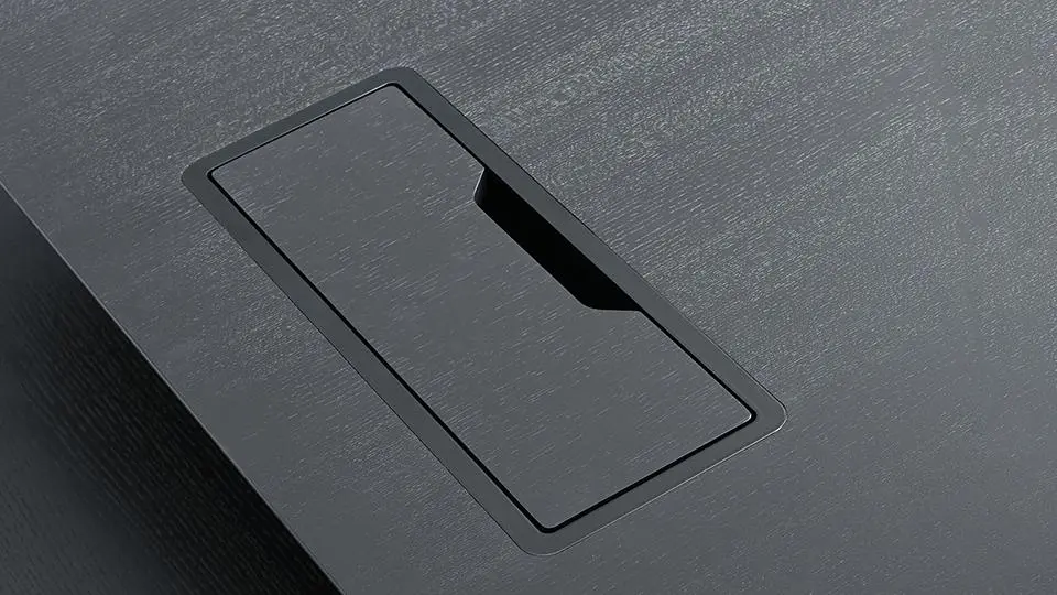 - Steel metal frame – 13 mm width on top, flush with the desktop’s surface; powder coated metal;