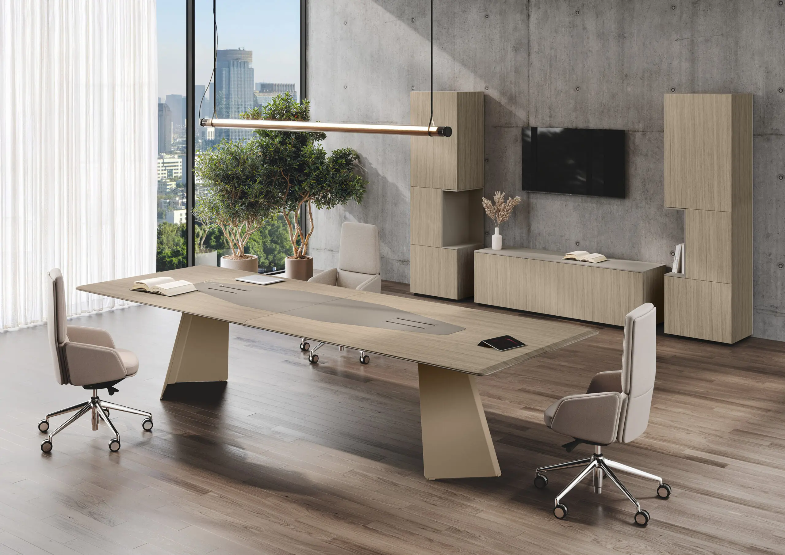 Monolith, an executive system that combines elegance and character with style. The design of the metal base, a distinctive and sculptural element, gives a modern and refined touch to spaces. Ideal for making every environment unique and classy.