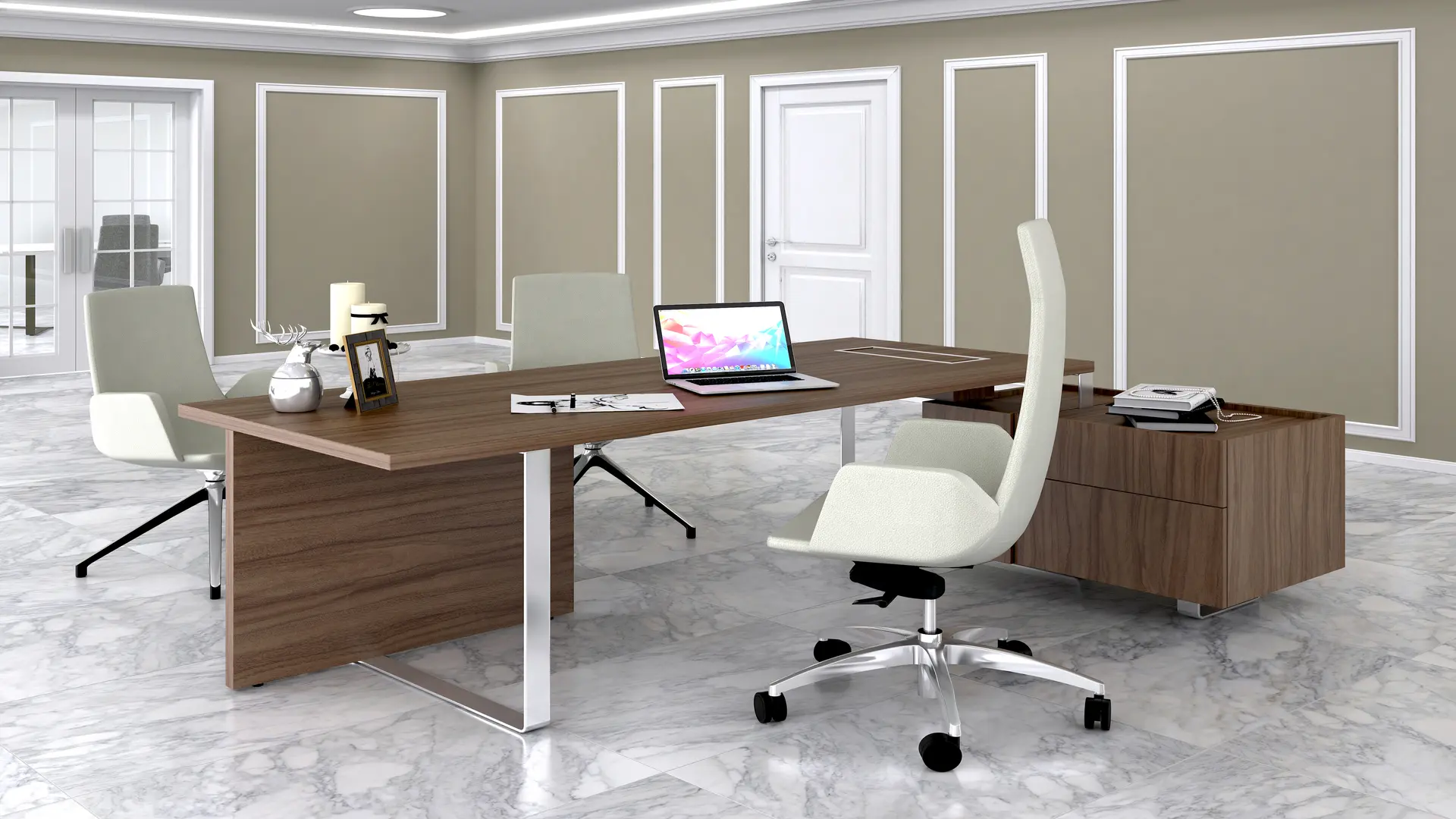 - 16 mm MFC (melamine) or chipboard covered in wood veneer matching the desktop;