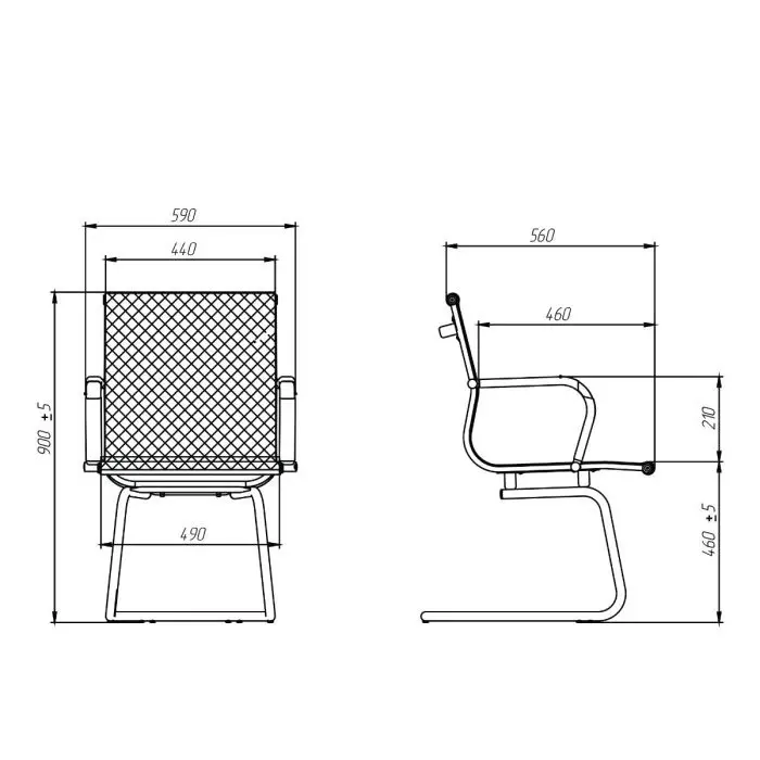 Design distinctiv (cadru metalic cromat + element moale). Șezut și spătar confortabil. Cotiere metalice cu decorate piele eco sau stofă. Dispunibil și în versiune pentru personal.