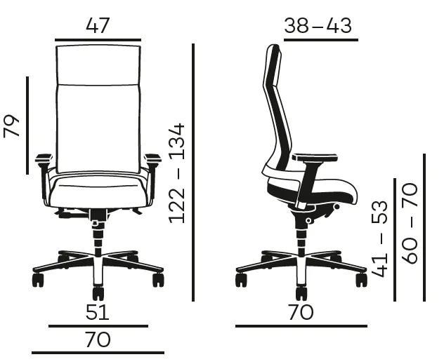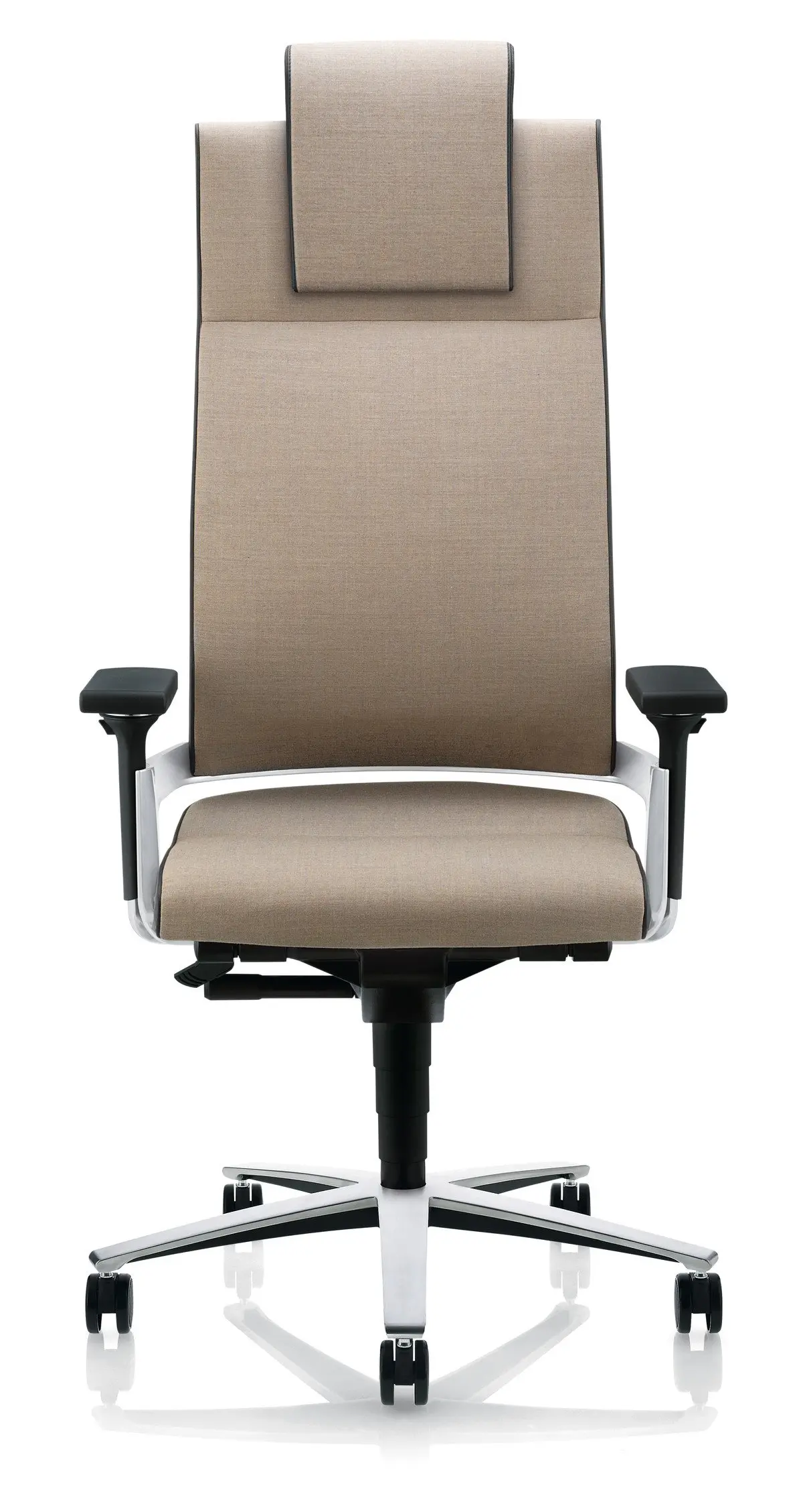 Механизм Syncro-Dynamic Advanced® предотвращает усталость и обеспечивает здоровую осанку благодаря индивидуально регулируемой поверхности сиденья. Нижняя боковая секция контрастного цвета, кожаные боковые вставки и декоративные элементы спинки из полированного алюминия — вот визуальные особенности этого кресла руководителя, впечатляющего во всех отношениях.