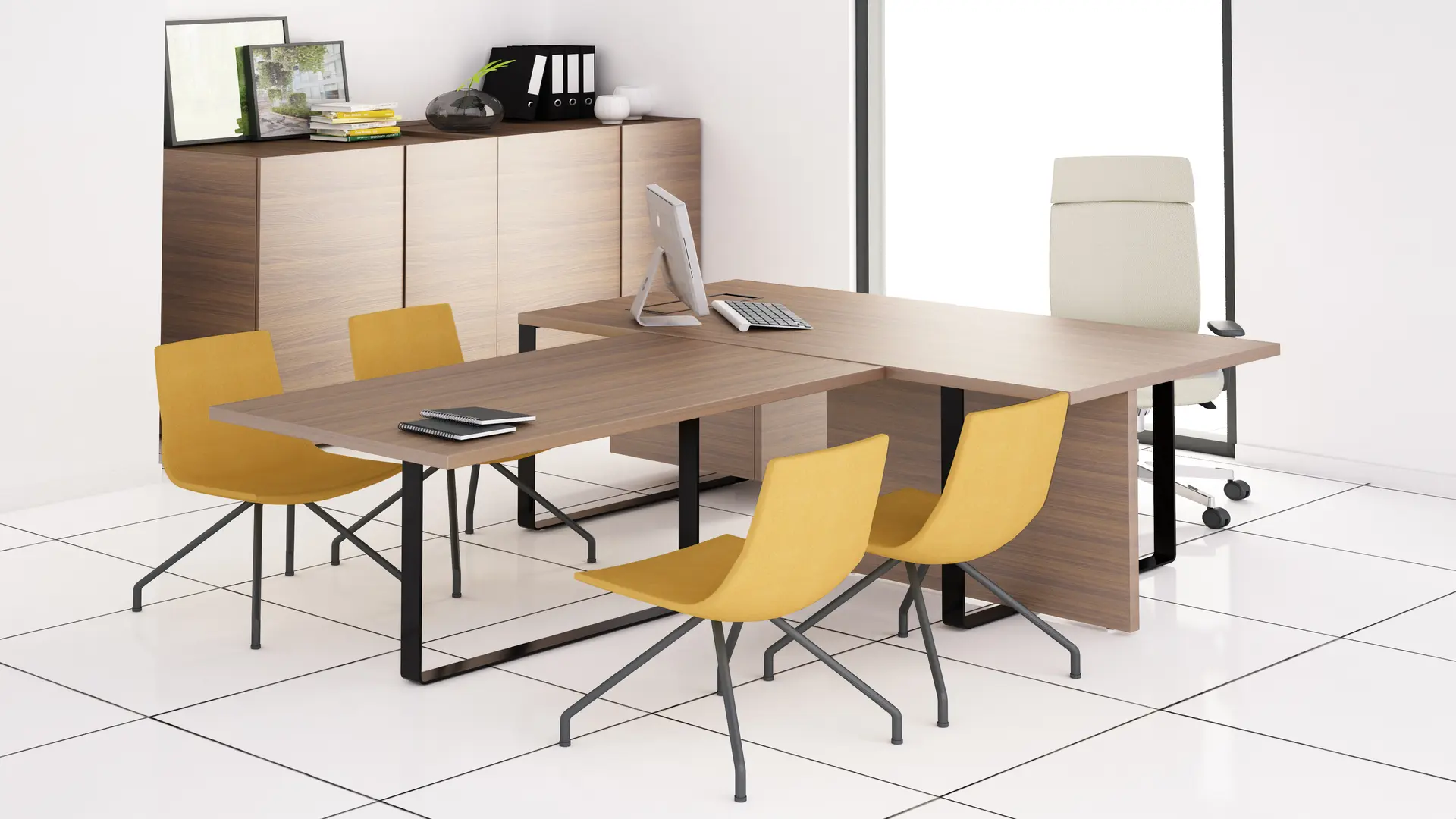 - 16 mm MFC (melamine) or chipboard covered in wood veneer matching the desktop;