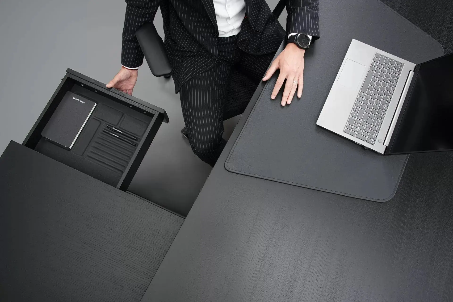 - Sertar de colț superior cu încuietoare, cu partea de jos acoperită cu piele;