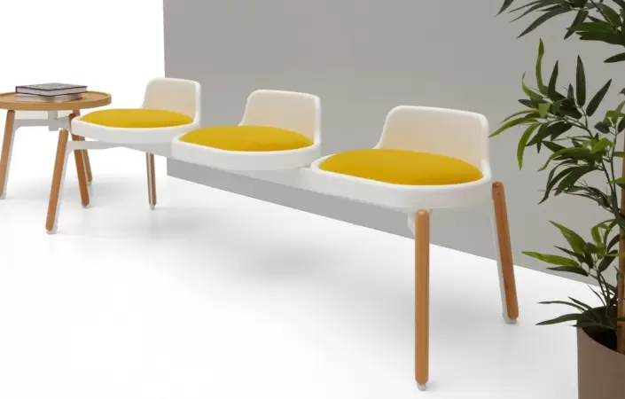 Zoom este proiectat fără spătar și permite utilizatorilor să comunice cu ușurință între ei. Construcția metalică oferă rezistență și durabilitate, în timp ce elementele de fixare din lemn masiv conferă acestui mobilier o senzație de ușurință.